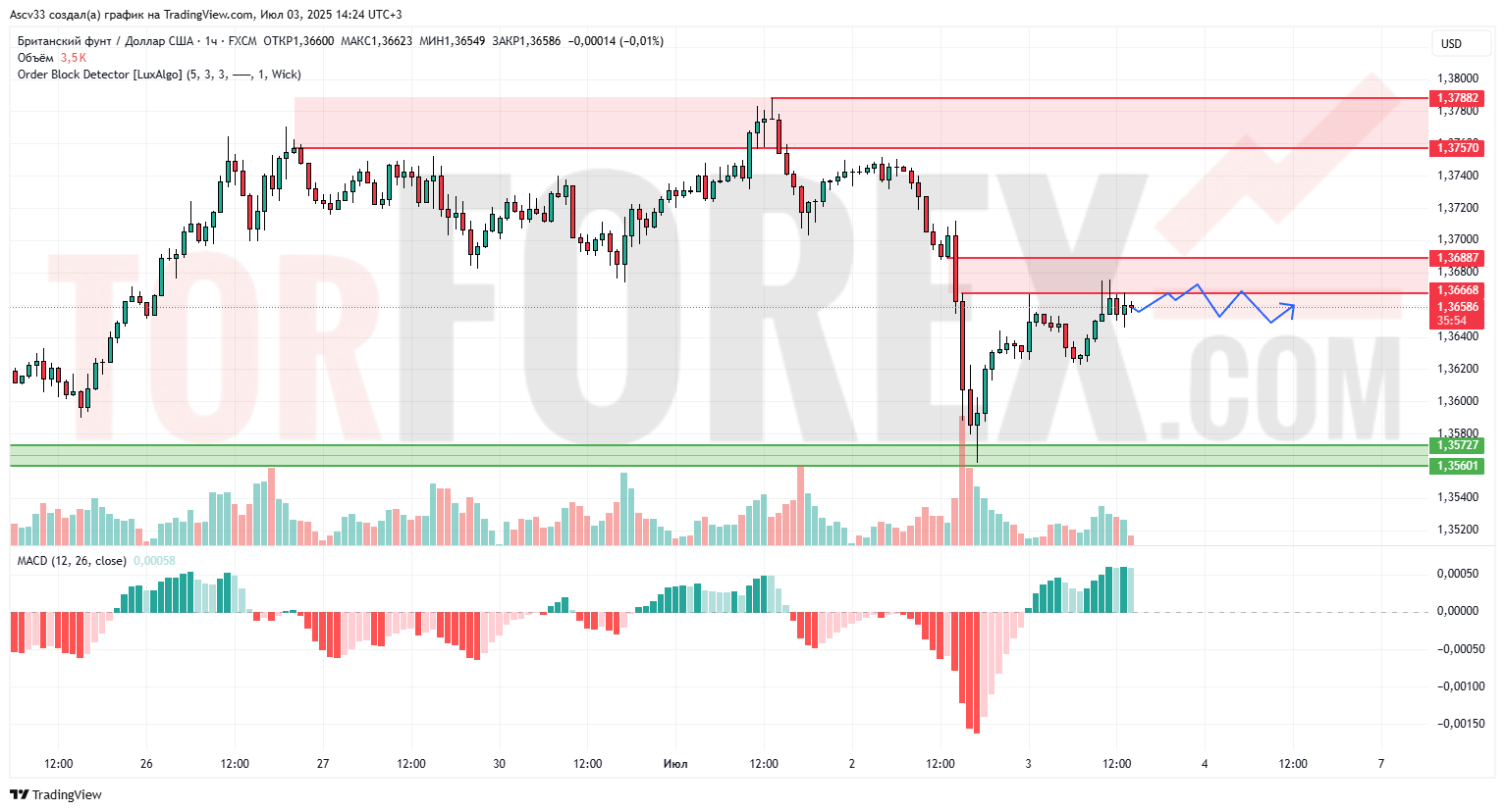 1.3572–1.3560 — зона спроса, где ранее цена показывала устойчивые отскоки. При снижении сюда возможно формирование нового импульса.