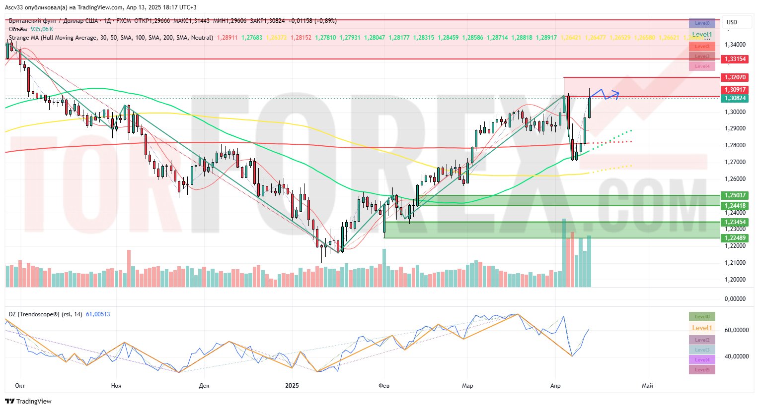 • Лонг: на откате к 1.30 или пробое 1.32 — цели 1.3315 / 1.3550