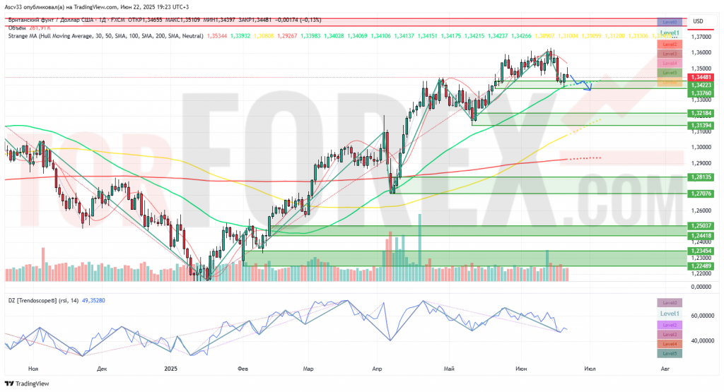 Если быки удержат зону 1,3420 и вернутся выше 1,3500, возможно повторное тестирование 1,3600–1,3650.