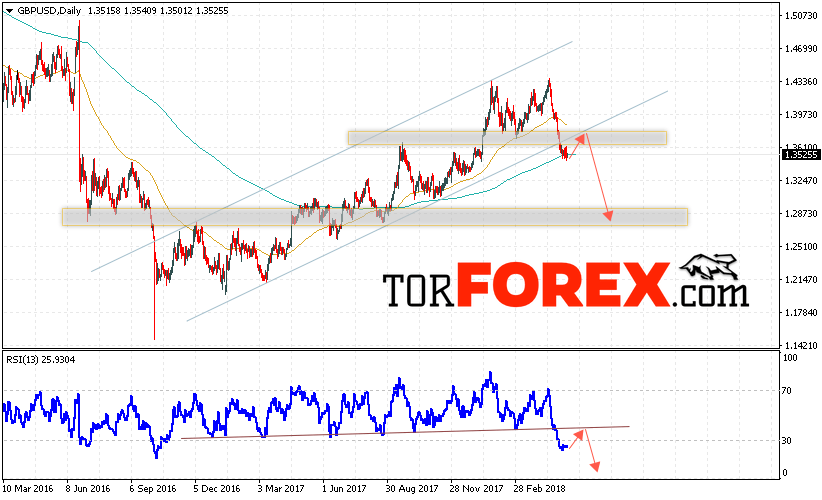 Таким образом, GBP/USD прогноз Форекс на неделю 14 — 18 мая 2018 предполагает попытку теста уровня сопротивления вблизи области 1.3700, откуда стоит ожидать продолжения падения пары с целью ниже области 1.2850, дополнительным сигналом в пользу падения выступит тест линии тренда на индикаторе относительной силы, отменой варианта снижения пары Фунт Доллар станет сильный рост и пробой уровня 1.4050.