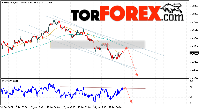 Таким образом, GBP/USD прогноз Фунт Доллар на 1 февраля 2022 предполагает попытку теста области сопротивления вблизи уровня 1.3465. Затем, продолжение падения с целью рже уровня 1.3205. Дополнительным сигналом в пользу снижения Британского Фунта выступит тест линии сопротивления на индикаторе относительной силы (RSI). Отменой варианта падения станет сильный рост Фунта против Доллара США и пробой области 1.3595. Это укажет на продолжение подъёма пары с потенциальной целью выше уровня 1.3845.