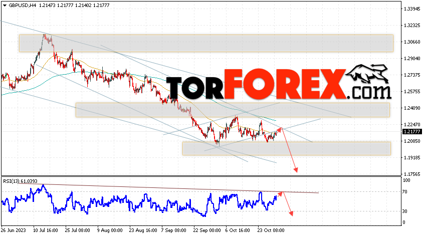 Таким образом, GBP/USD прогноз Фунт Доллар на 1 ноября 2023 предполагает попытку теста области сопротивления вблизи уровня 1.2135. Затем, продолжение падения с целью вблизи уровня 1.1725. Дополнительным сигналом в пользу снижения Британского Фунта выступит тест линии сопротивления на индикаторе относительной силы (RSI). Отменой варианта падения станет сильный рост Британского Фунта против Доллара США и пробой области 1.2275. Это укажет на продолжение подъёма на Форекс пары с потенциальной целью выше уровня 1.2475.