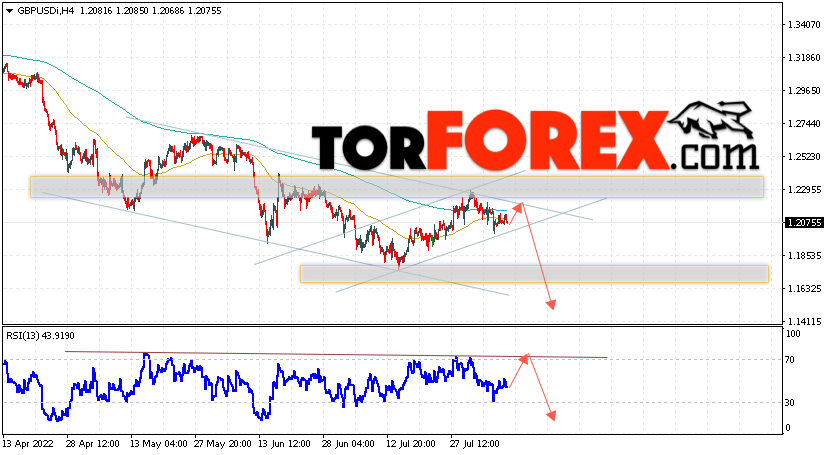 Таким образом, GBP/USD прогноз Фунт Доллар на 10 августа 2022 предполагает попытку теста области сопротивления вблизи уровня 1.2115. Затем, продолжение падения с целью вблизи уровня 1.1585. Дополнительным сигналом в пользу снижения Британского Фунта выступит тест линии сопротивления на индикаторе относительной силы (RSI). Отменой варианта падения станет сильный рост Фунта против Доллара США и пробой области 1.2325. Это укажет на продолжение подъёма на Форекс пары с потенциальной целью выше уровня 1.2585.