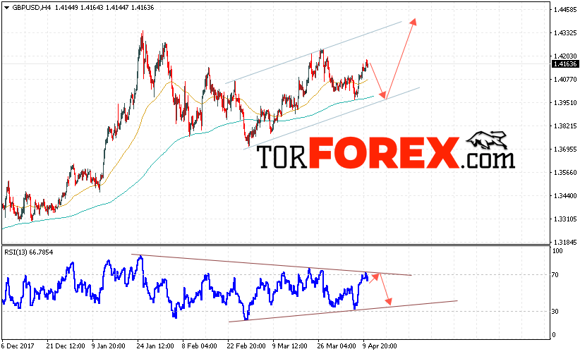 Таким образом, GBP/USD прогноз Фунт Доллар на 11 апреля 2018 предполагает попытку теста нижней границы восходящего канала вблизи уровня 1.4000 и продолжение роста с целью выше уровня 1.4350, дополнительным сигналом в пользу падения Британского Фунта выступит тест линии тренда на индикаторе относительной силы, отменой варианта снижения станет сильный рост и пробой области 1.4250.