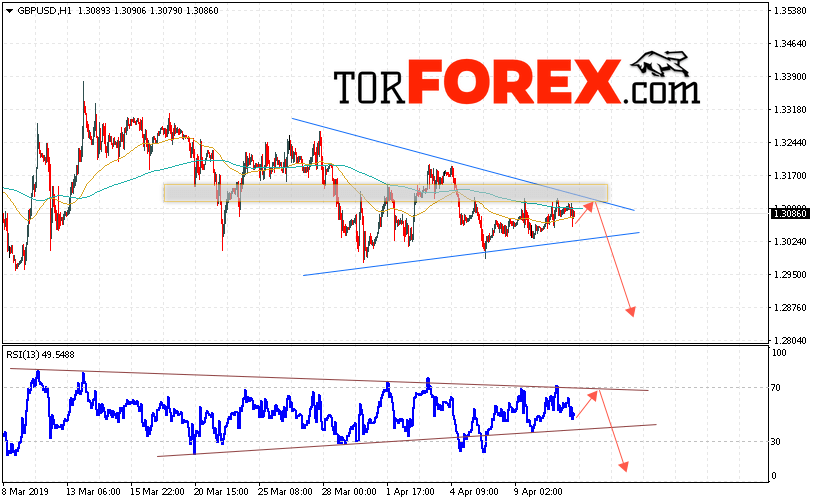 Таким образом, GBP/USD прогноз Фунт Доллар на 12 апреля 2019 предполагает попытку теста области сопротивления вблизи уровня 1.3105. Затем продолжение падения с целью ниже уровня 1.2875. Дополнительным сигналом в пользу падения Британского Фунта выступит тест линии тренда на индикаторе относительной силы. Отменой варианта снижения станет сильный рост и пробой области 1.2875. Это укажет на продолжение подъёма пары с потенциальной целью выше уровня 1.3315.
