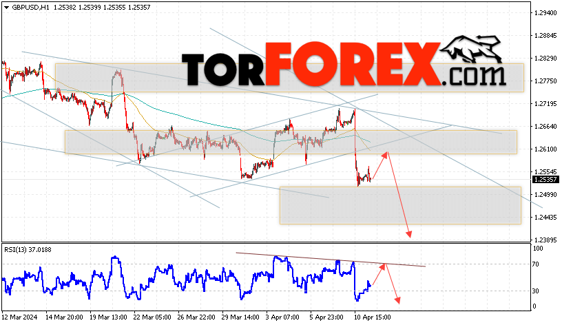 Таким образом, GBP/USD прогноз Фунт Доллар на 12 апреля 2024 предполагает попытку теста области сопротивления вблизи уровня 1.2605. Затем, продолжение снижения с целью вблизи уровня 1.2385. Дополнительным сигналом в пользу падения Британского Фунта выступит тест линии сопротивления на индикаторе относительной силы (RSI). Отменой варианта снижения станет сильный рост Британского Фунта против Доллара США и пробой области 1.2735. Это укажет на продолжение подъёма на Форекс пары с потенциальной целью выше уровня 1.2875.