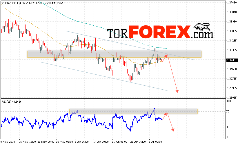 Таким образом, GBP/USD прогноз Фунт Доллар на 12 июля 2018 предполагает попытку теста области сопротивления вблизи уровня 1.3280 и продолжение снижения с целью ниже уровня 1.2980, дополнительным сигналом в пользу падения Британского Фунта выступит тест линии тренда на индикаторе относительной силы, отменой варианта снижения станет сильный рост и пробой области 1.3350, что укажет на выход котировок за пределы канала и продолжение роста пары.