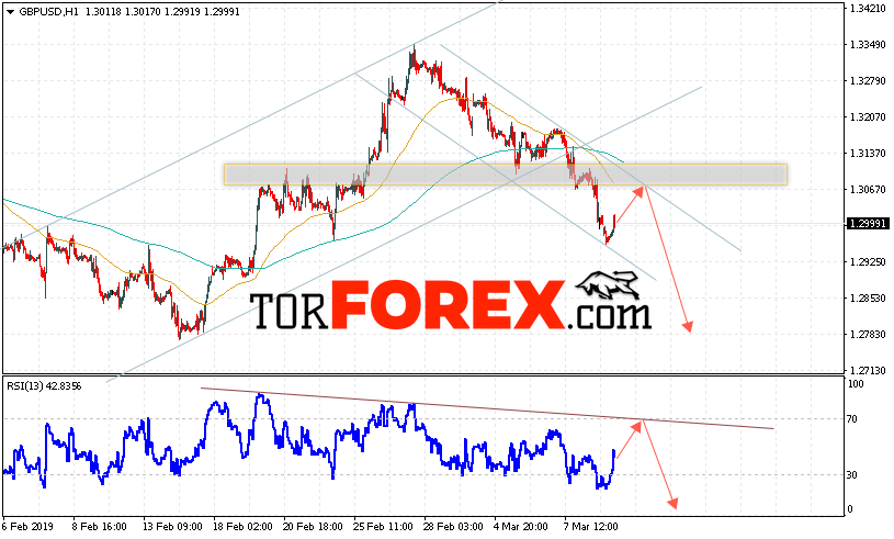 Валютная пара Фунт Доллар GBP/USD продолжает движение в рамках коррекции. В момент публикации прогноза курс Фунта к Доллару США составляет 1.2999. На данный момент стоит ожидать попытку роста и тест области сопротивления вблизи уровня 1.3065. Откуда вновь стоит ожидать отскок и продолжение падения Фунта против Доллара. Целью нисходящего движения валютной пары, в рамках Форекс прогноза на 12 марта 2019 года, выступает область на уровне 1.2785.