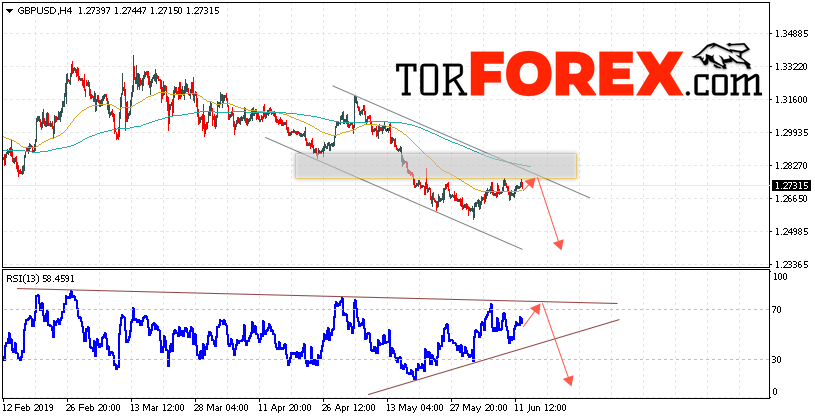 Валютная пара Фунт Доллар GBP/USD продолжает движение в рамках коррекции и нисходящего канала. В момент публикации прогноза курс Фунта к Доллару США составляет 1.2731. Скользящие средние указывают на наличие краткосрочной нисходящей тенденции. На данный момент стоит ожидать попытку продолжение роста и тест области сопротивления вблизи уровня 1.2755. Откуда вновь стоит ожидать отскок и продолжение снижения Фунта против Доллара. Целью нисходящего движения валютной пары, в рамках Форекс прогноза на 13 июня 2019 года, выступает область на уровне 1.2425.