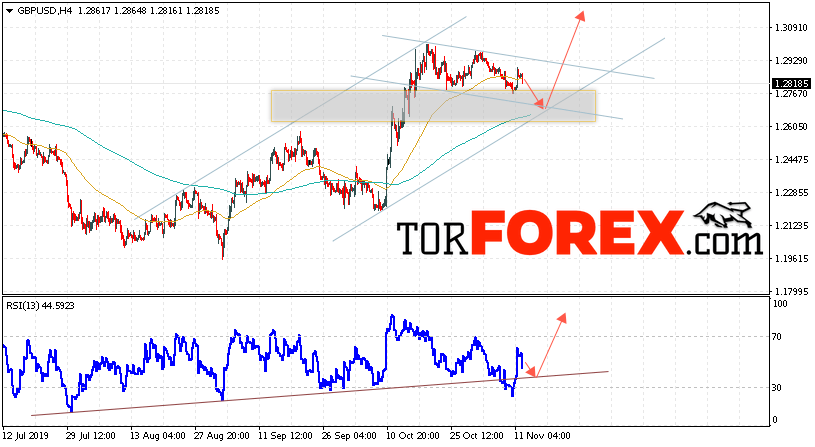 Таким образом, GBP/USD прогноз Фунт Доллар на 13 ноября 2019 предполагает попытку теста области поддержки вблизи уровня 1.2725. Затем, продолжение роста с целью выше уровня 1.3155. Дополнительным сигналом в пользу подъёма Британского Фунта выступит тест линии тренда на индикаторе относительной силы. Отменой варианта роста станет падение и пробой области 1.2565. Это укажет на продолжение снижения пары с потенциальной целью ниже уровня 1.2205.