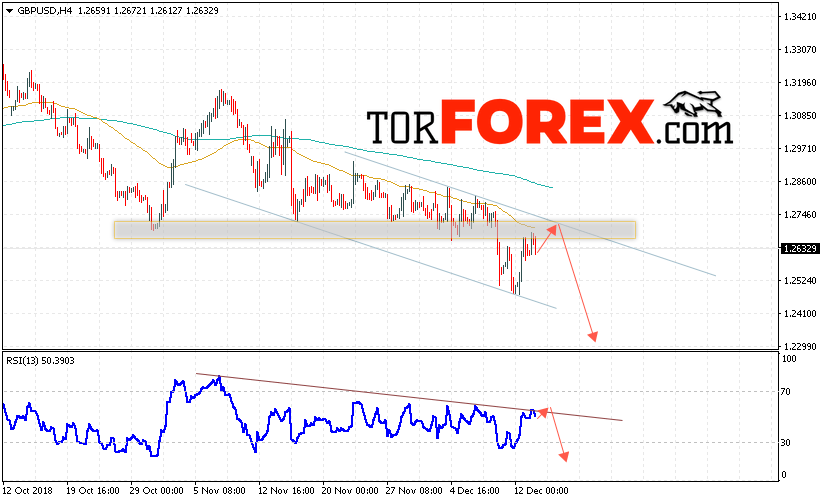 Валютная пара Фунт Доллар GBP/USD продолжает движение в рамках снижения. В момент публикации прогноза курс Фунта к Доллару США составляет 1.2632. На данный момент стоит ожидать попытку роста и теста области сопротивления вблизи уровня 1.2725. Откуда вновь стоит ожидать отскок и продолжение снижения Фунта против Доллара. Целью нисходящего движения валютной пары, в рамках Форекс прогноза на 14 декабря 2018 года, выступает область на уровне 1.2295.