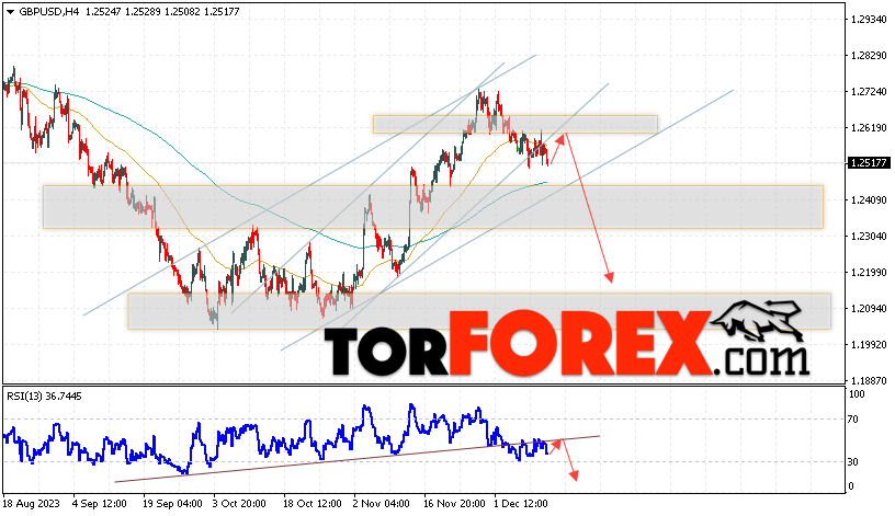 Таким образом, GBP/USD прогноз Фунт Доллар на 14 декабря 2023 предполагает попытку теста области сопротивления вблизи уровня 1.2565. Затем, продолжение падения с целью вблизи уровня 1.2195. Дополнительным сигналом в пользу снижения Британского Фунта выступит тест линии сопротивления на индикаторе относительной силы (RSI). Отменой варианта падения станет сильный рост Британского Фунта против Доллара США и пробой области 1.2675. Это укажет на продолжение подъёма на Форекс пары с потенциальной целью выше уровня 1.2895.