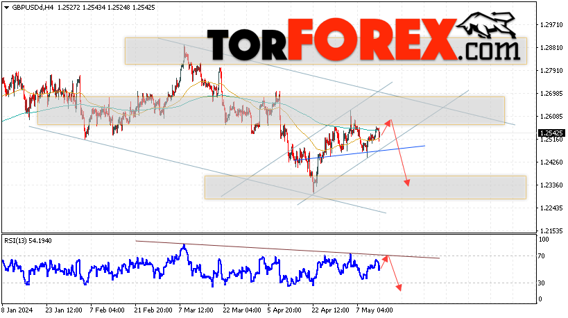 Таким образом, GBP/USD прогноз Фунт Доллар на 15 мая 2024 предполагает попытку теста области сопротивления вблизи уровня 1.2570. Затем, продолжение падения с целью вблизи уровня 1.2335. Дополнительным сигналом в пользу снижения Британского Фунта выступит тест линии сопротивления на индикаторе относительной силы (RSI). Отменой варианта падения станет сильный рост Британского Фунта против Доллара США и пробой области 1.2695. Это укажет на продолжение подъёма на Форекс пары с потенциальной целью выше уровня 1.2855.