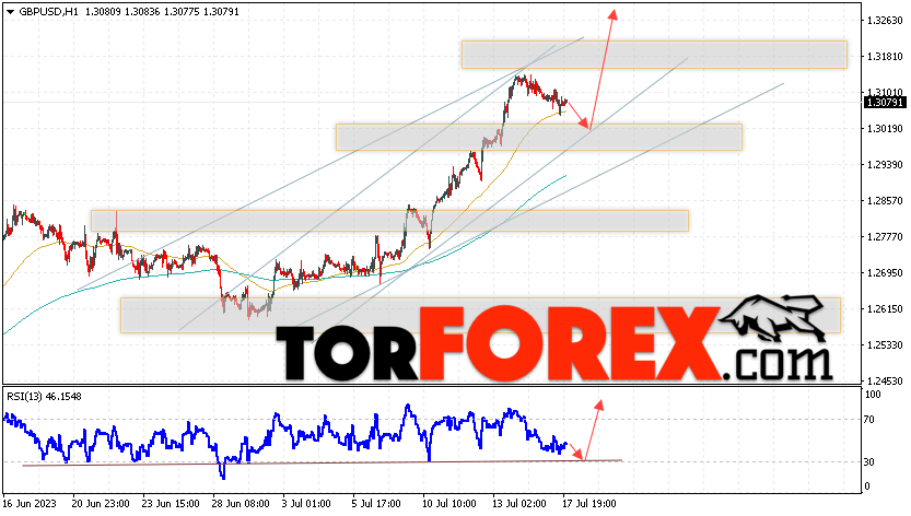 Таким образом, GBP/USD прогноз Фунт Доллар на 18 июля 2023 предполагает попытку теста области поддержки вблизи уровня 1.3015. Затем, продолжение роста с целью вблизи уровня 1.3285. Дополнительным сигналом в пользу подъёма Британского Фунта выступит тест линии поддержки на индикаторе относительной силы (RSI). Отменой варианта роста станет падение Британского Фунта против Доллара США и пробой области 1.2905. Это укажет на продолжение снижения на Форекс пары с потенциальной целью ниже уровня 1.2695.