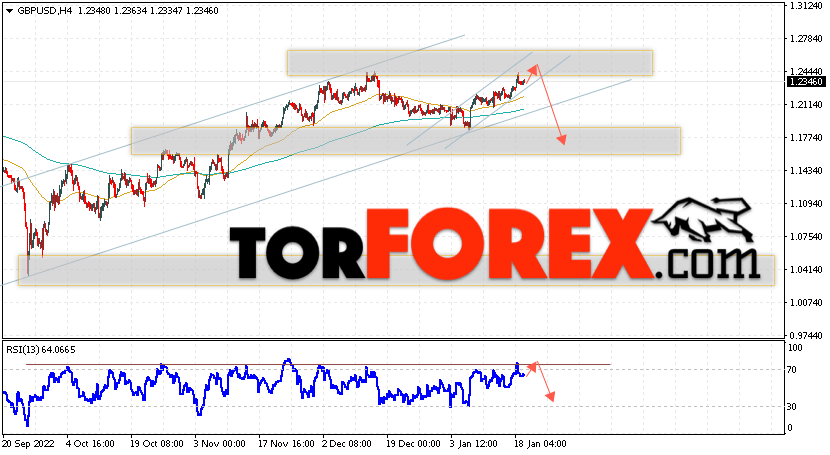 Валютная пара Фунт Доллар GBP/USD продолжает движение в рамках развития роста и бычьего канала. Сохраняется потенциал для формирования разворотной модели ”Двойная вершина”.В момент публикации прогноза курс Фунта к Доллару США на Форекс составляет 1.2346. Скользящие средние указывают на наличие краткосрочной бычьей тенденции. Цены пробили область между сигнальными линиями вверх, что указывает на давление со стороны покупателей валютной пары и потенциальное продолжение роста инструмента. На данный момент стоит ожидать попытку развития роста курса Британского Фунта против Американского Доллара и тест области сопротивления вблизи уровня 1.2465. Откуда вновь стоит ожидать отскок вниз и продолжения падения котировок валютной пары Британского Фунта против Доллара США. Целью снижения пары, в рамках Форекс прогноза на 20 января 2023, выступает область на уровне 1.1745.