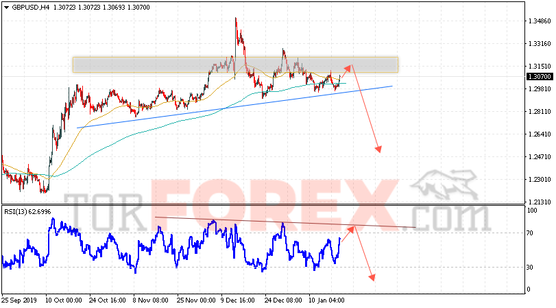 Таким образом, GBP/USD прогноз Фунт Доллар на 22 января 2020 предполагает попытку теста области сопротивления вблизи уровня 1.3155. Затем, продолжение падения с целью ниже уровня 1.2475. Дополнительным сигналом в пользу падения Британского Фунта выступит тест области сопротивления на индикаторе относительной силы. Отменой варианта падения станет сильный рост и пробой области 1.3315. Это укажет на продолжение подъёма пары с потенциальной целью выше уровня 1.3525.