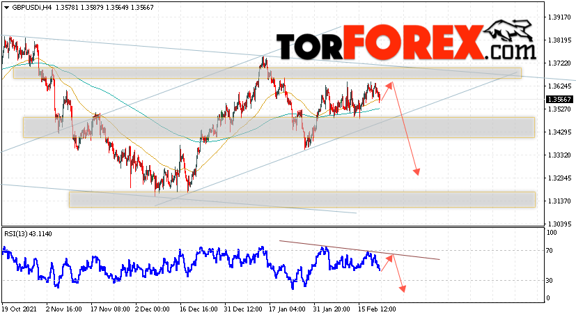Таким образом, GBP/USD прогноз Фунт Доллар на 23 февраля 2022 предполагает попытку теста области сопротивления вблизи уровня 1.3625. Затем, продолжение падения с целью вблизи уровня 1.3235. Дополнительным сигналом в пользу снижения Британского Фунта выступит тест линии сопротивления на индикаторе относительной силы (RSI). Отменой варианта падения станет сильный рост Фунта против Доллара США и пробой области 1.3735. Это укажет на продолжение подъёма пары с потенциальной целью выше уровня 1.3965.