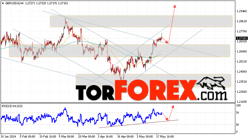 Таким образом, GBP/USD прогноз Фунт Доллар на 23 мая 2024 предполагает попытку теста области поддержки вблизи уровня 1.2685. Затем, продолжение роста с целью вблизи уровня 1.2985. Дополнительным сигналом в пользу подъёма Британского Фунта выступит тест линии поддержки на индикаторе относительной силы (RSI). Отменой варианта роста станет падение Британского Фунта против Доллара США и пробой области 1.2545. Это укажет на продолжение снижения на Форекс пары с потенциальной целью ниже уровня 1.2235.