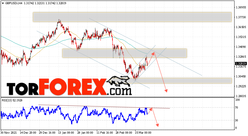 Таким образом, GBP/USD прогноз Фунт Доллар на 24 марта 2022 предполагает попытку теста области сопротивления вблизи уровня 1.3285. Затем, продолжение падения с целью вблизи уровня 1.2835. Дополнительным сигналом в пользу снижения Британского Фунта выступит тест линии сопротивления на индикаторе относительной силы (RSI). Отменой варианта падения станет сильный рост Фунта против Доллара США и пробой области 1.3485. Это укажет на продолжение подъёма пары с потенциальной целью выше уровня 1.3755.