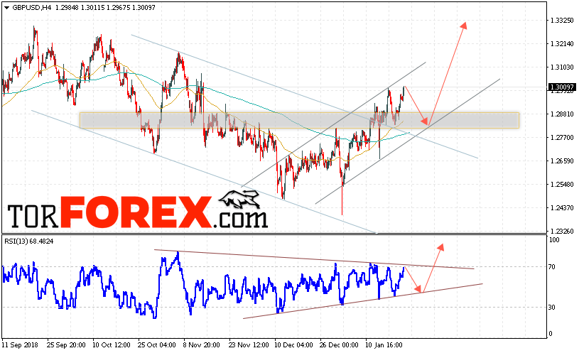 Таким образом, GBP/USD прогноз Фунт Доллар на 24 января 2019 предполагает попытку теста области поддержки вблизи уровня 1.2875. Затем продолжение роста с целью выше уровня 1.3325. Дополнительным сигналом в пользу роста Британского Фунта выступит тест линии тренда на индикаторе относительной силы. Отменой варианта подъёма станет падение и пробой области 1.2750. Это укажет на продолжение снижения пары с потенциальной целью ниже уровня 1.2550.