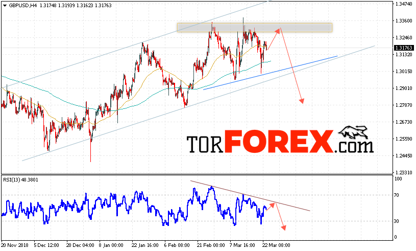 Таким образом, GBP/USD прогноз Фунт Доллар на 26 марта 2019 предполагает попытку теста области сопротивления вблизи уровня 1.3295. Затем продолжение падения с целью ниже уровня 1.2785. Дополнительным сигналом в пользу падения Британского Фунта выступит тест линии тренда на индикаторе относительной силы. Отменой варианта снижения станет сильный рост и пробой области 1.3375. Это укажет на продолжение подъёма пары с потенциальной целью выше уровня 1.3495.