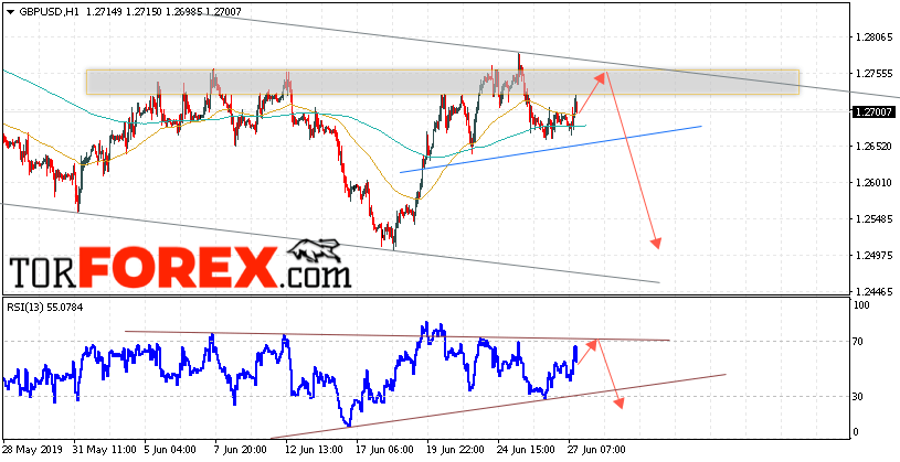 Таким образом, GBP/USD прогноз Фунт Доллар на 28 июня 2019 предполагает попытку теста области сопротивления вблизи уровня 1.2750. Затем продолжение падения с целью ниже уровня 1.2495. Дополнительным сигналом в пользу снижения Британского Фунта выступит тест линии тренда на индикаторе относительной силы. Отменой варианта падения станет сильный рост и пробой области 1.2835. Это укажет на продолжение роста пары с потенциальной целью выше уровня 1.3065.