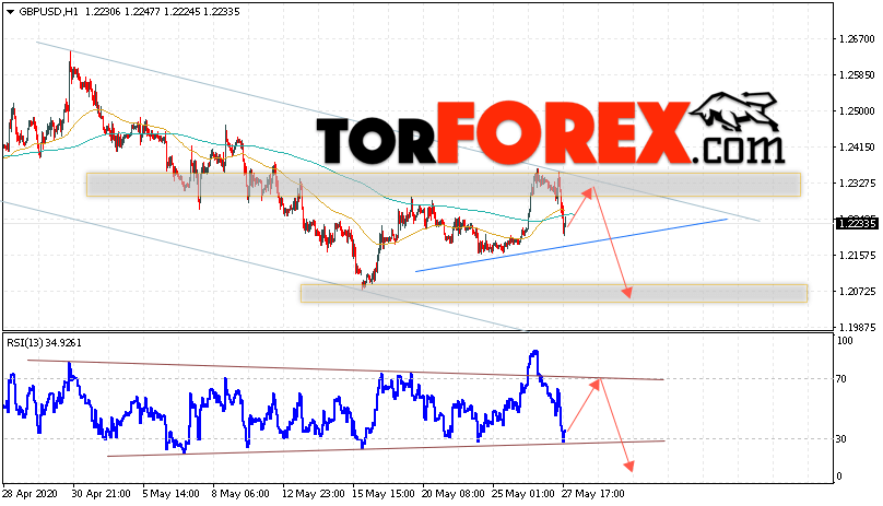 На данный момент стоит ожидать попытку развития роста курса Британского Фунта против Американского Доллара и тест области сопротивления вблизи уровня 1.2305. Откуда вновь стоит ожидать отскок и продолжения падения котировок валютной пары Британского Фунта против Доллара США. Целью нисходящего движения валютной пары, в рамках Форекс прогноза на 28 мая 2020 года, выступает область на уровне 1.2065.