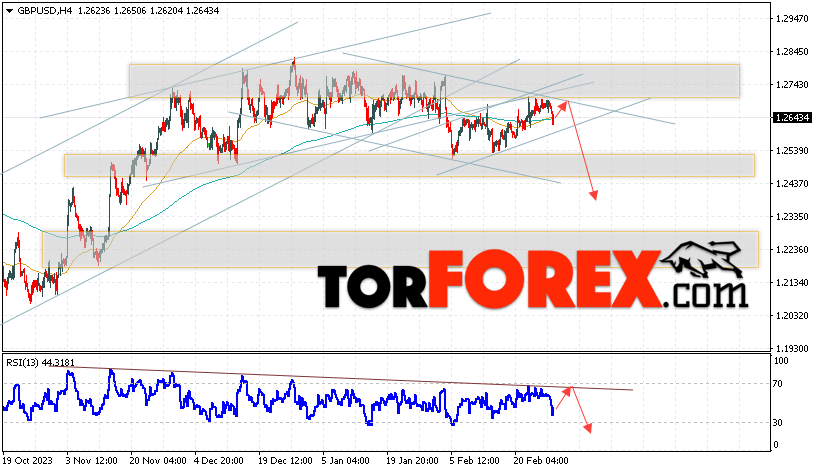 Таким образом, GBP/USD прогноз Фунт Доллар на 29 февраля 2024 предполагает попытку теста области сопротивления вблизи уровня 1.2675. Затем, продолжение падения с целью вблизи уровня 1.2415. Дополнительным сигналом в пользу снижения Британского Фунта выступит тест линии сопротивления на индикаторе относительной силы (RSI). Отменой варианта падения станет сильный рост Британского Фунта против Доллара США и пробой области 1.2765. Это укажет на продолжение подъёма на Форекс пары с потенциальной целью выше уровня 1.2975.