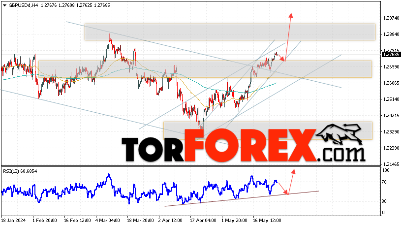 Таким образом, GBP/USD прогноз Фунт Доллар на 29 мая 2024 предполагает попытку теста области поддержки вблизи уровня 1.2705. Затем, продолжение роста с целью вблизи уровня 1.2975. Дополнительным сигналом в пользу подъёма Британского Фунта выступит тест линии поддержки на индикаторе относительной силы (RSI). Отменой варианта роста станет падение Британского Фунта против Доллара США и пробой области 1.2615. Это укажет на продолжение снижения на Форекс пары с потенциальной целью ниже уровня 1.2385.