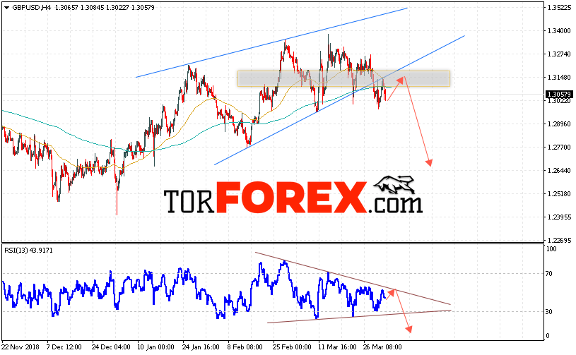 Валютная пара Фунт Доллар GBP/USD продолжает движение в рамках коррекции и формирования разворотной модели. В момент публикации прогноза курс Фунта к Доллару США составляет 1.3057. На данный момент стоит ожидать попытку роста и тест области сопротивления вблизи уровня 1.3145. Откуда вновь стоит ожидать отскок и продолжение падения Фунта против Доллара. Целью нисходящего движения валютной пары, в рамках Форекс прогноза на 3 апреля 2019 года, выступает область на уровне 1.2645.
