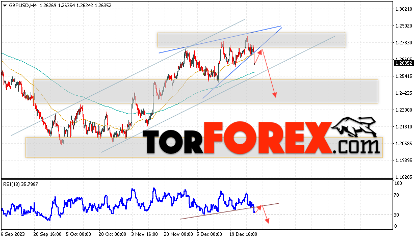 Таким образом, GBP/USD прогноз Фунт Доллар на 3 января 2024 предполагает попытку теста области сопротивления вблизи уровня 1.2685. Затем, продолжение падения с целью вблизи уровня 1.2415. Дополнительным сигналом в пользу снижения Британского Фунта выступит тест линии сопротивления на индикаторе относительной силы (RSI). Отменой варианта падения станет сильный рост Британского Фунта против Доллара США и пробой области 1.2945. Это укажет на продолжение подъёма на Форекс пары с потенциальной целью выше уровня 1.3225.