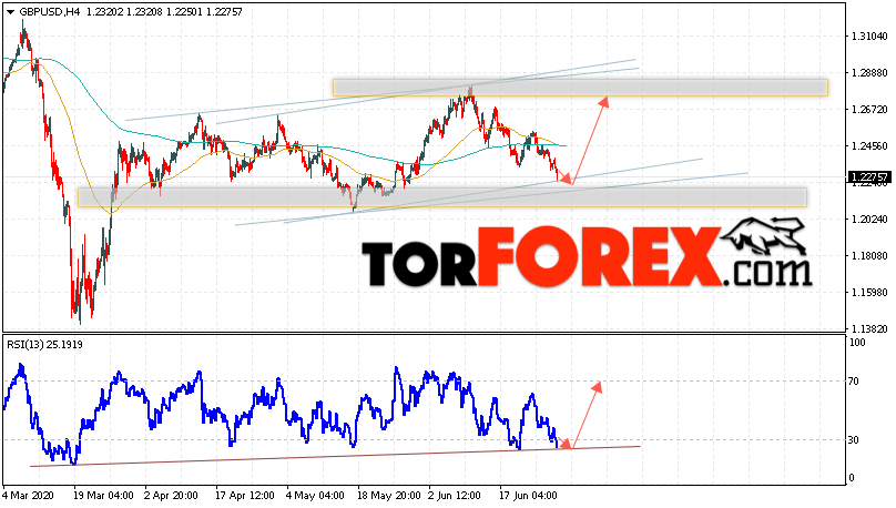 Таким образом, GBP/USD прогноз Фунт Доллар на 30 июня 2020 предполагает попытку теста области поддержки вблизи уровня 1.2235. Затем, продолжение роста с целью выше уровня 1.2685. Дополнительным сигналом в пользу подъёма Британского Фунта выступит тест линии поддержки на индикаторе относительной силы. Отменой варианта роста станет падение и пробой области 1.2025. Это укажет на продолжение снижения пары с потенциальной целью ниже уровня 1.1825.