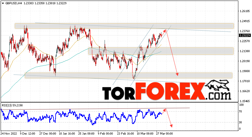 Таким образом, GBP/USD прогноз Фунт Доллар на 30 марта 2023 предполагает попытку теста области сопротивления вблизи уровня 1.2375. Затем, продолжение падения с целью вблизи уровня 1.1875. Дополнительным сигналом в пользу снижения Британского Фунта выступит тест линии сопротивления на индикаторе относительной силы (RSI). Отменой варианта падения станет сильный рост Фунта против Доллара США и пробой области 1.2585. Это укажет на продолжение подъёма на Форекс пары с потенциальной целью выше уровня 1.2805.
