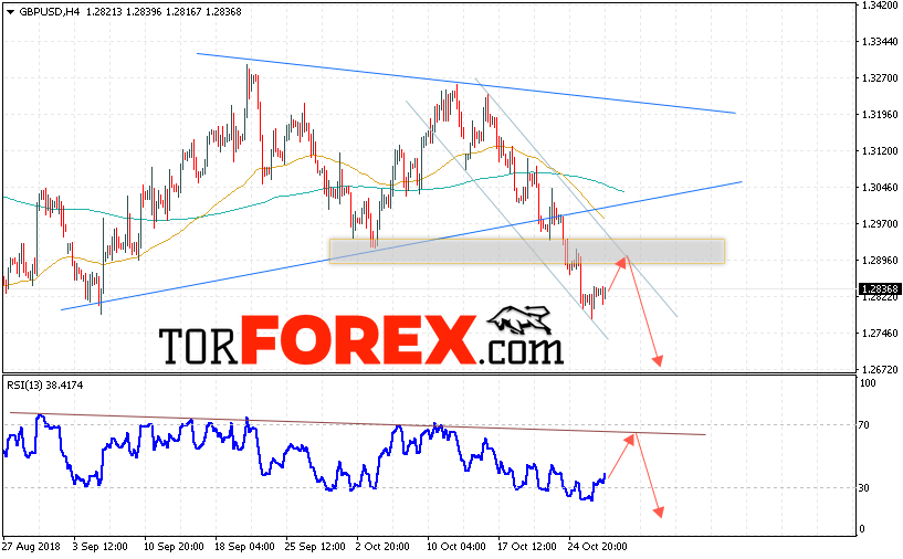 Таким образом, GBP/USD прогноз Фунт Доллар на 30 октября 2018 предполагает попытку теста области сопротивления вблизи уровня 1.2895 и продолжение падения с целью ниже уровня 1.2670, дополнительным сигналом в пользу снижения Британского Фунта выступит тест линии тренда на индикаторе относительной силы, отменой варианта падения станет сильный рост и пробой области 1.2970, что укажет на продолжение роста пары.