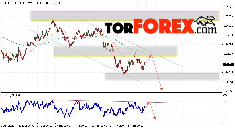 Таким образом, GBP/USD прогноз Фунт Доллар на 31 марта 2022 предполагает попытку теста области сопротивления вблизи уровня 1.3245. Затем, продолжение падения с целью вблизи уровня 1.2765. Дополнительным сигналом в пользу снижения Британского Фунта выступит тест линии сопротивления на индикаторе относительной силы (RSI). Отменой варианта падения станет сильный рост Фунта против Доллара США и пробой области 1.3405. Это укажет на продолжение подъёма пары с потенциальной целью выше уровня 1.3635.