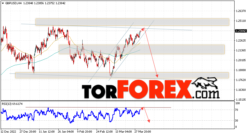Таким образом, GBP/USD прогноз Фунт Доллар на 31 марта 2023 предполагает попытку теста области сопротивления вблизи уровня 1.2405. Затем, продолжение падения с целью вблизи уровня 1.1775. Дополнительным сигналом в пользу снижения Британского Фунта выступит тест линии сопротивления на индикаторе относительной силы (RSI). Отменой варианта падения станет сильный рост Фунта против Доллара США и пробой области 1.2555. Это укажет на продолжение подъёма на Форекс пары с потенциальной целью выше уровня 1.2775.
