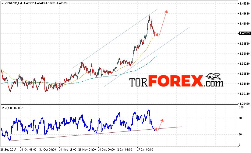 Таким образом, GBP/USD прогноз Фунт Доллар на 31 января 2018 предполагает попытку теста нижней границы канала вблизи 1.4020 и продолжение роста с целью выше уровне 1.4370, дополнительным сигналом в пользу роста Британского Фунта выступит тест линии поддержки на индикаторе относительной силы.
