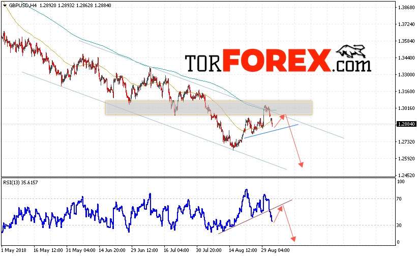Таким образом, GBP/USD прогноз Фунт Доллар на 4 сентября 2018 предполагает попытку теста области сопротивления вблизи уровня 1.2960 и продолжение падения с целью ниже уровня 1.2450, дополнительным сигналом в пользу снижения Британского Фунта выступит тест линии сопротивления на индикаторе относительной силы, отменой варианта падения станет сильный рост и пробой области 1.3065, что укажет на продолжение роста пары и отмену формирования разворотной модели.