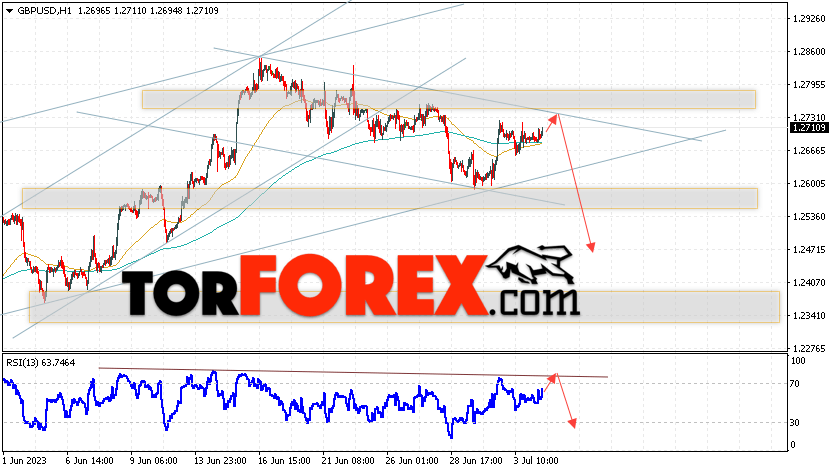 Таким образом, GBP/USD прогноз Фунт Доллар на 5 июля 2023 предполагает попытку теста области сопротивления вблизи уровня 1.2730. Затем, продолжение падения с целью вблизи уровня 1.2475. Дополнительным сигналом в пользу снижения Британского Фунта выступит тест линии сопротивления на индикаторе относительной силы (RSI). Отменой варианта падения станет сильный рост Британского Фунта против Доллара США и пробой области 1.2775. Это укажет на продолжение роста на Форекс пары с потенциальной целью выше уровня 1.3125.