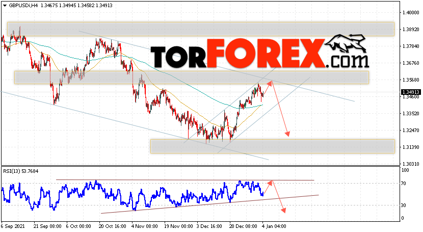Таким образом, GBP/USD прогноз Фунт Доллар на 5 января 2022 предполагает попытку теста области сопротивления вблизи уровня 1.3565. Затем, продолжение падения с целью ниже уровня 1.3165. Дополнительным сигналом в пользу снижения Британского Фунта выступит тест линии сопротивления на индикаторе относительной силы. Отменой варианта падения станет сильный рост и пробой области 1.3675. Это укажет на продолжение подъёма пары с потенциальной целью выше уровня 1.3885.