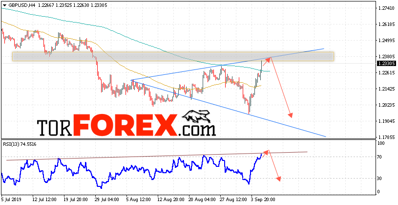 Валютная пара Фунт Доллар GBP/USD продолжает движение в рамках сильного роста и формирования модели «Расширяющийся Треугольник». В момент публикации прогноза курс Фунта к Доллару США на Форекс составляет 1.2330. Скользящие средние указывают на наличие краткосрочной медвежьей тенденции. На данный момент стоит ожидать попытку роста курса Британского Фунта и тест области сопротивления вблизи уровня 1.2375. Откуда вновь стоит ожидать отскок и продолжение снижения котировок валютной пары Британского Фунта против Доллара США. Целью нисходящего движения валютной пары, в рамках Форекс прогноза на 6 сентября 2019 года, выступает область на уровне 1.1905.
