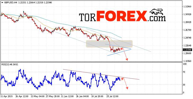 Валютная пара Фунт Доллар GBP/USD продолжает движение в рамках снижения и формирования модели «Треугольник». В момент публикации прогноза курс Фунта к Доллару США на Форекс составляет 1.2154. Скользящие средние указывают на наличие краткосрочной медвежьей тенденции. На данный момент стоит ожидать попытку коррекции курса и тест области сопротивления вблизи уровня 1.2185. Откуда вновь стоит ожидать отскок и продолжение падения Британского Фунта против Доллара США. Целью нисходящего движения валютной пары, в рамках Форекс прогноза на 8 августа 2019 года, выступает область на уровне 1.1845.