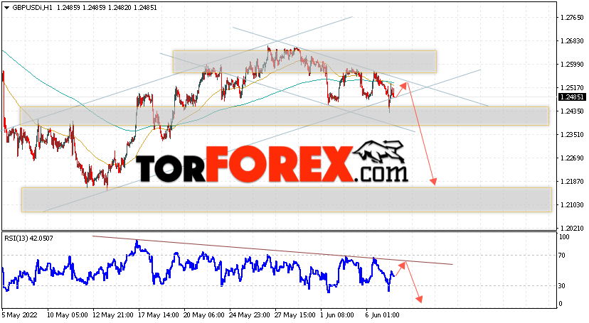 Таким образом, GBP/USD прогноз Фунт Доллар на 8 июня 2022 предполагает попытку теста области сопротивления вблизи уровня 1.2520. Затем, продолжение падения с целью вблизи уровня 1.2065. Дополнительным сигналом в пользу снижения Британского Фунта выступит тест линии сопротивления на индикаторе относительной силы (RSI). Отменой варианта падения станет сильный рост Фунта против Доллара США и пробой области 1.2685. Это укажет на продолжение подъёма на Форекс пары с потенциальной целью выше уровня 1.3105.