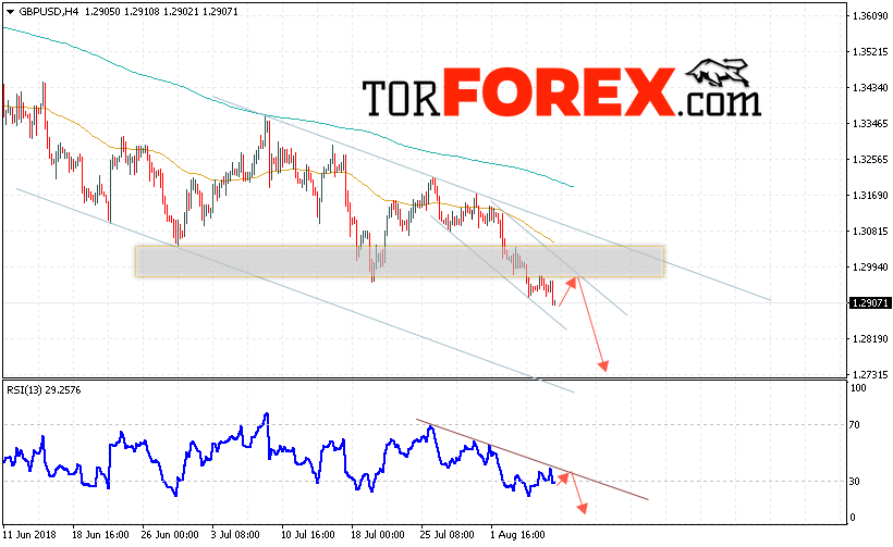 Таким образом, GBP/USD прогноз Фунт Доллар на 9 августа 2018 предполагает попытку теста области сопротивления вблизи уровня 1.2985 и продолжение снижения с целью ниже уровня 1.2730, дополнительным сигналом в пользу падения Британского Фунта выступит тест линии сопротивления на индикаторе относительной силы, отменой варианта снижения станет сильный рост и пробой области 1.3100, что укажет на продолжение роста пары.