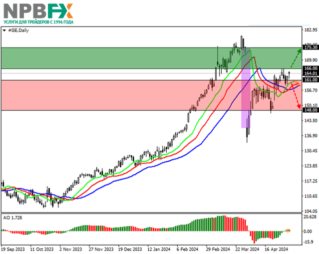 Акции General Electric Co., американской многоотраслевой корпорации, движутся в рамках усиливающегося восходящего тренда на отметке 164.00.