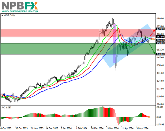 Акции General Electric Co., американской многоотраслевой корпорации, растут, торгуясь на отметке 160.00.