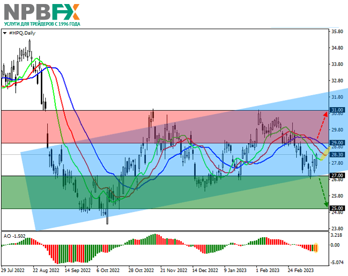 Акции Hewlett-Packard Co., американского гиганта в области информационных технологий, движутся в коррекционном тренде на уровне 28.30.