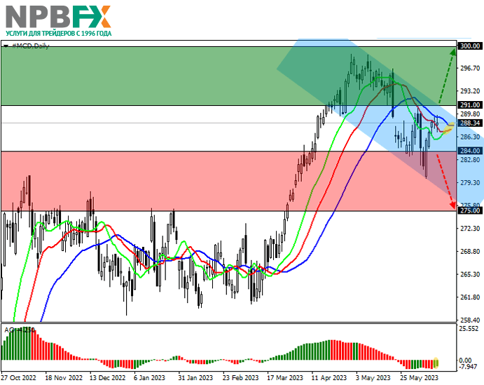 Акции McDonald’s Corp., крупнейшей мировой сети быстрого питания, корректируются в локальном тренде на уровне 288.00.