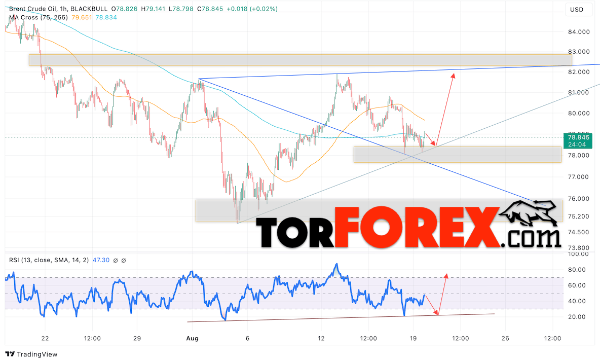 Таким образом, Нефть прогноз цены Brent на 20 августа 2024 предполагает тестирование уровня поддержки на отметки 78.05 долларов за баррель. Затем, ожидается продолжение роста нефти с целью выше уровня 82.05. Тест линии тренда на индикаторе относительной силы (RSI) будет подтверждать рост стоимости актива. Альтернативный сценарий, который предполагает падение цены нефти Brent, наступит при пробое уровня 77.05, что укажет на дальнейшее падения котировок к уровню ниже 71.05.