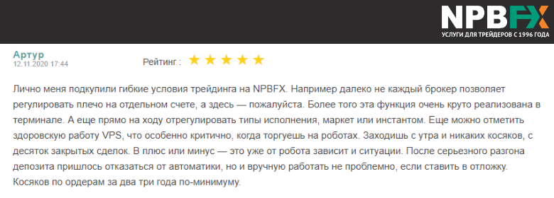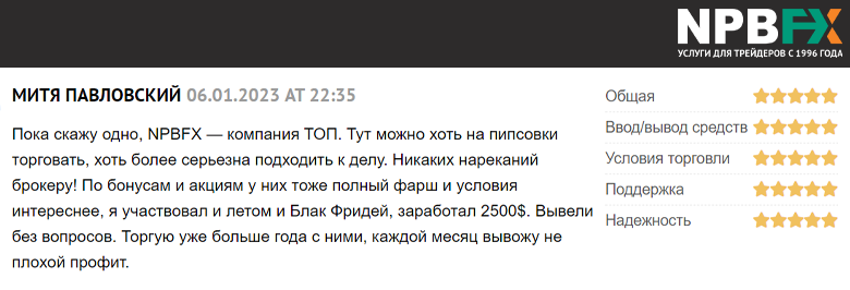 Что говорит ярче любых статей? Отзывы настоящих клиентов компании. Собрали несколько примеров, чтобы вы смогли ознакомиться с мнением трейдеров об условиях и возможностях брокера NPBFX.